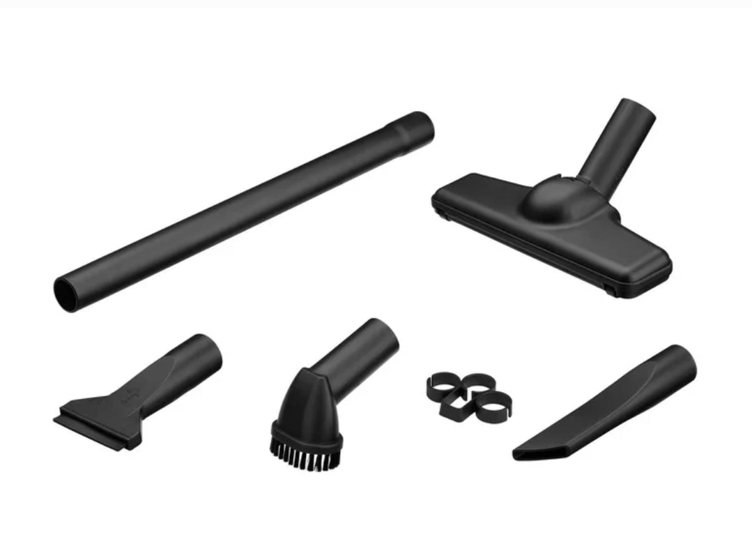 1x ακροφύσιο υγρού, 1x ακροφύσιο ρωγμής, 1x ακροφύσιο βούρτσας, 1x σύνδεση επέκτασης για χρήση ως ηλεκτρική σκούπα δαπέδου, 1x ακροφύσιο δαπέδου για σκληρά δάπεδα και λείες επιφάνειες, 1x υποδοχή ακροφυσίου❗️