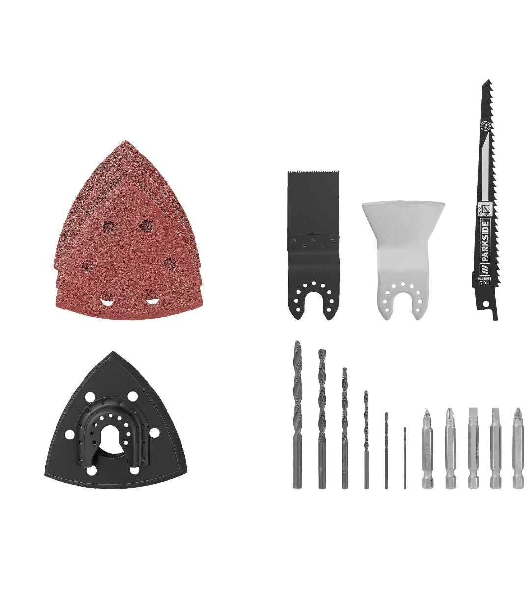 ❗️Περιλαμβάνονται αξεσουάρ: 1 πριονόλαμα HSS, 1 μαχαίρι ξύστρας, 1 πλάκα λείανσης δέλτα, 3 φύλλα λείανσης (1x P 60, 1x P 80, 1x P 120)❗️